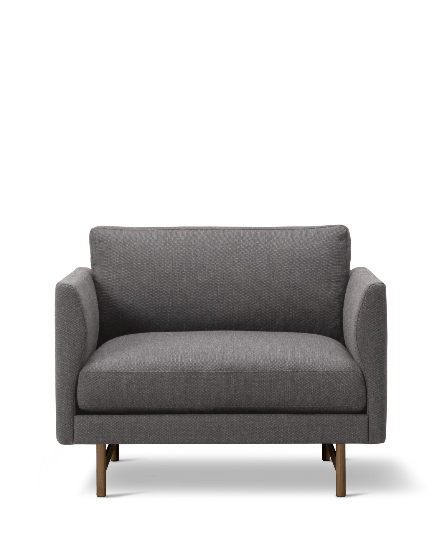 Calmo is a sofa concept designed for contemporary needs in both private and public spaces. The lounge chair of the series can easily be used on its own or with an accompanying ottoman. The structured exterior of the chair is softened by the graceful curve on the inside of the armrests, accompanied by soft tailored seat and back cushions.