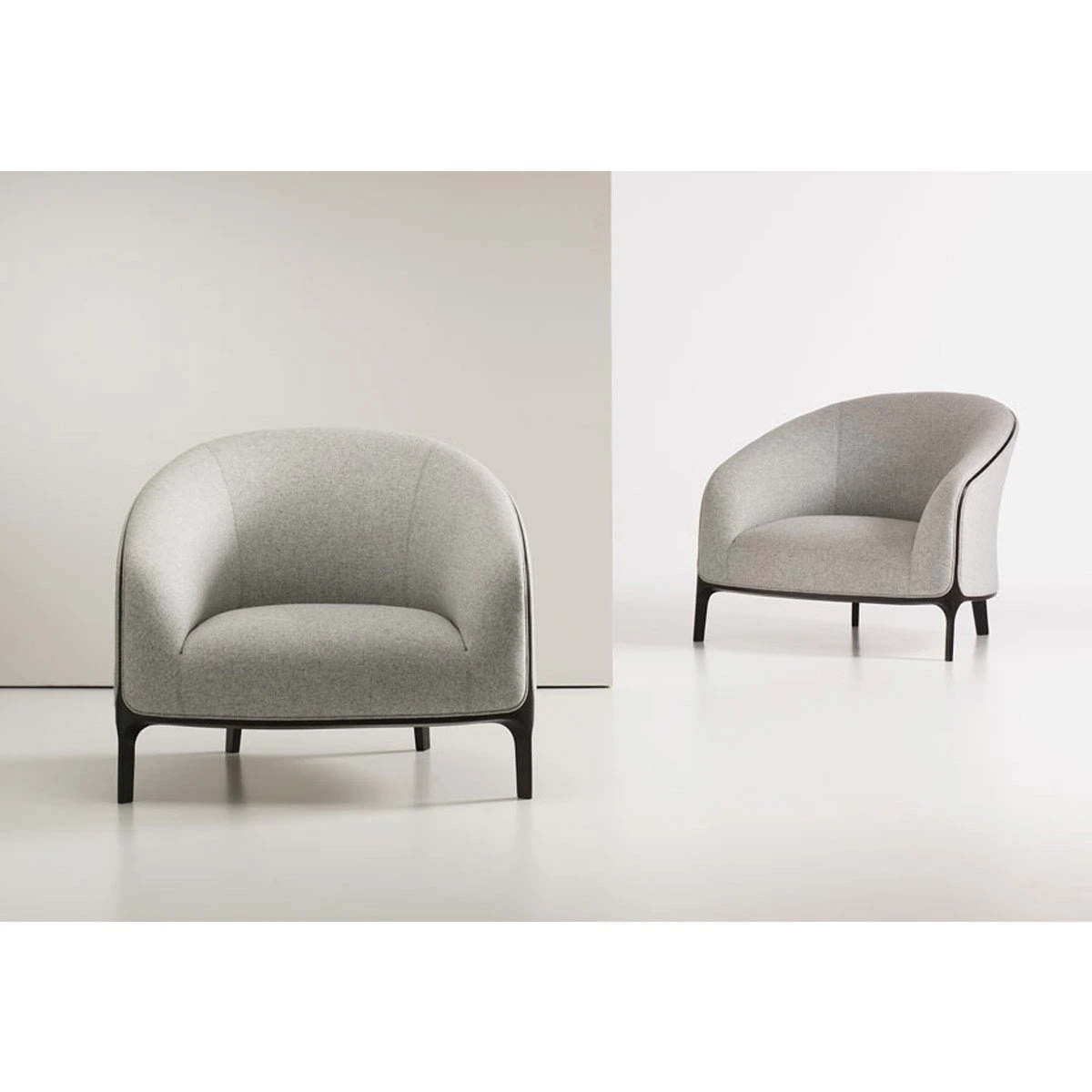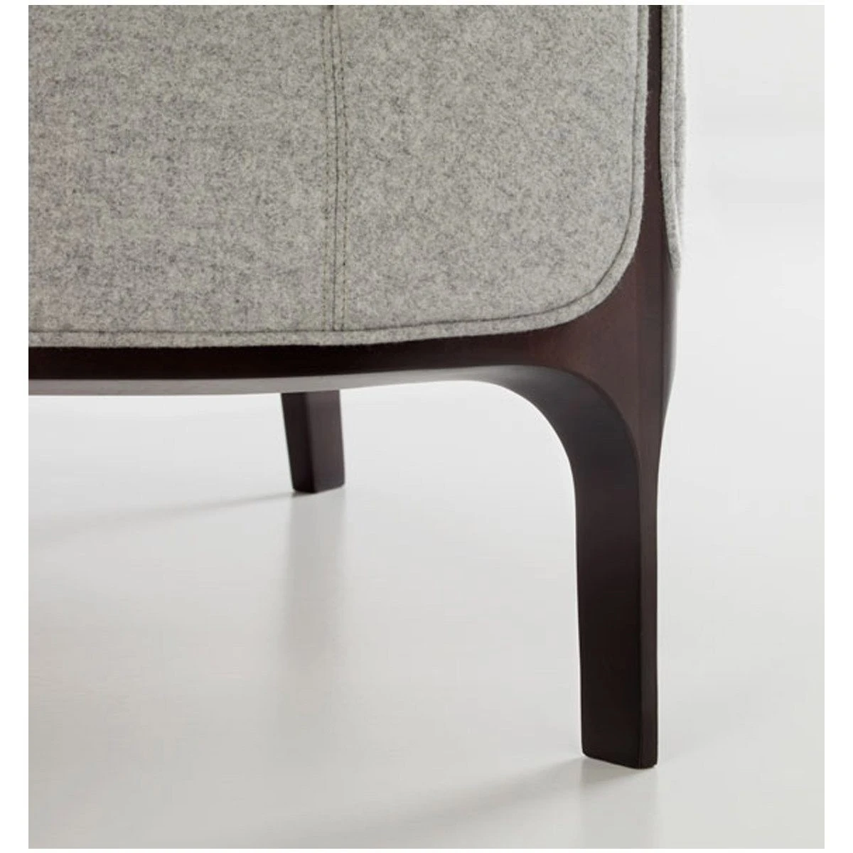 upholstered with exposed wood trim.Solid maple.Available in all finishes.Welt around perimeter of the wood trim.Height of arm: 21″at center.