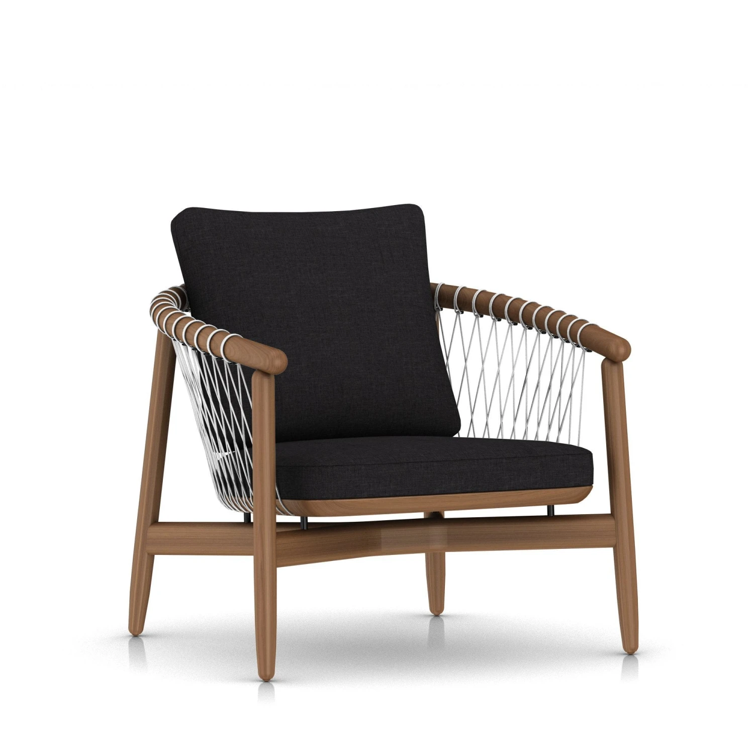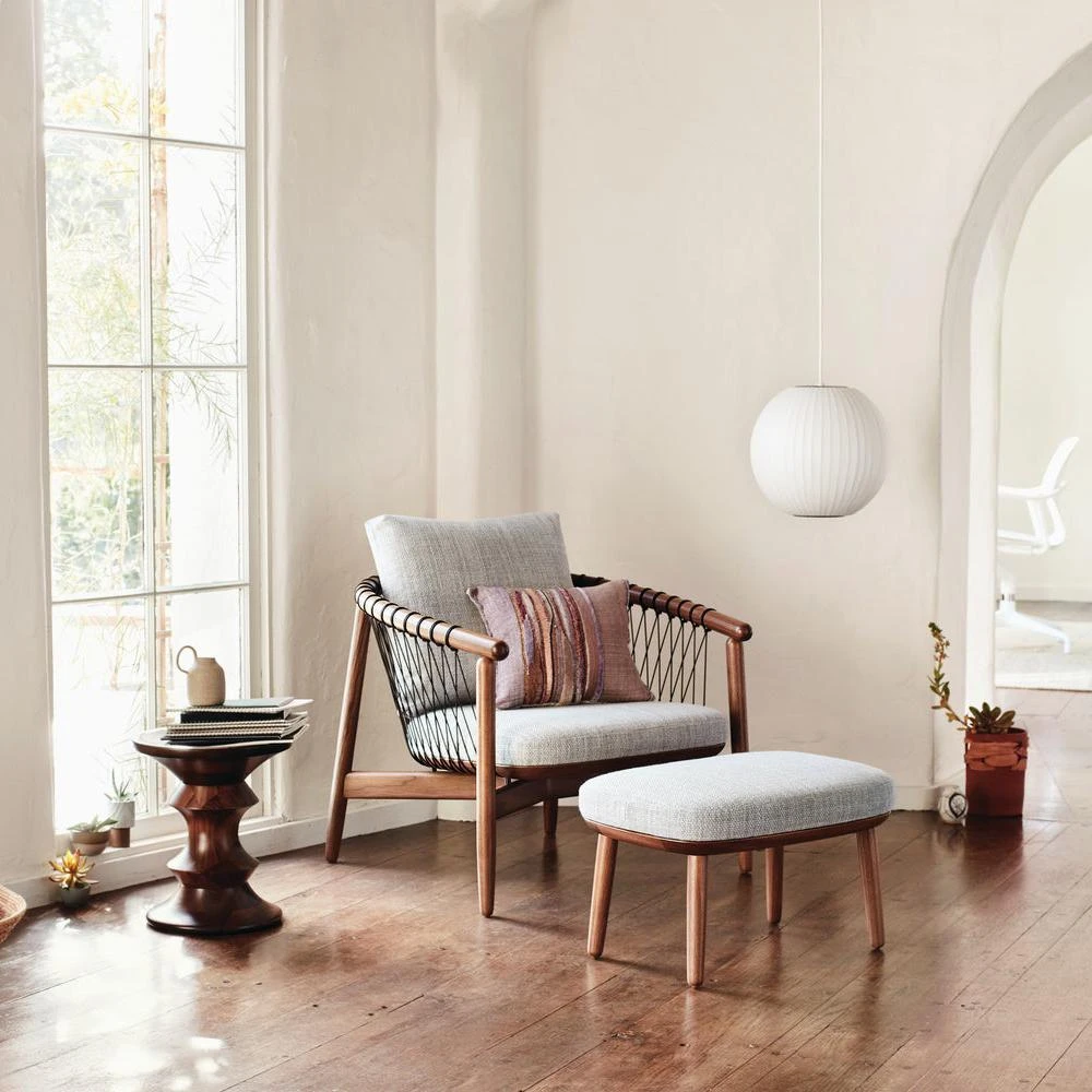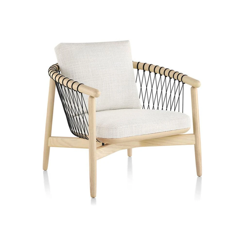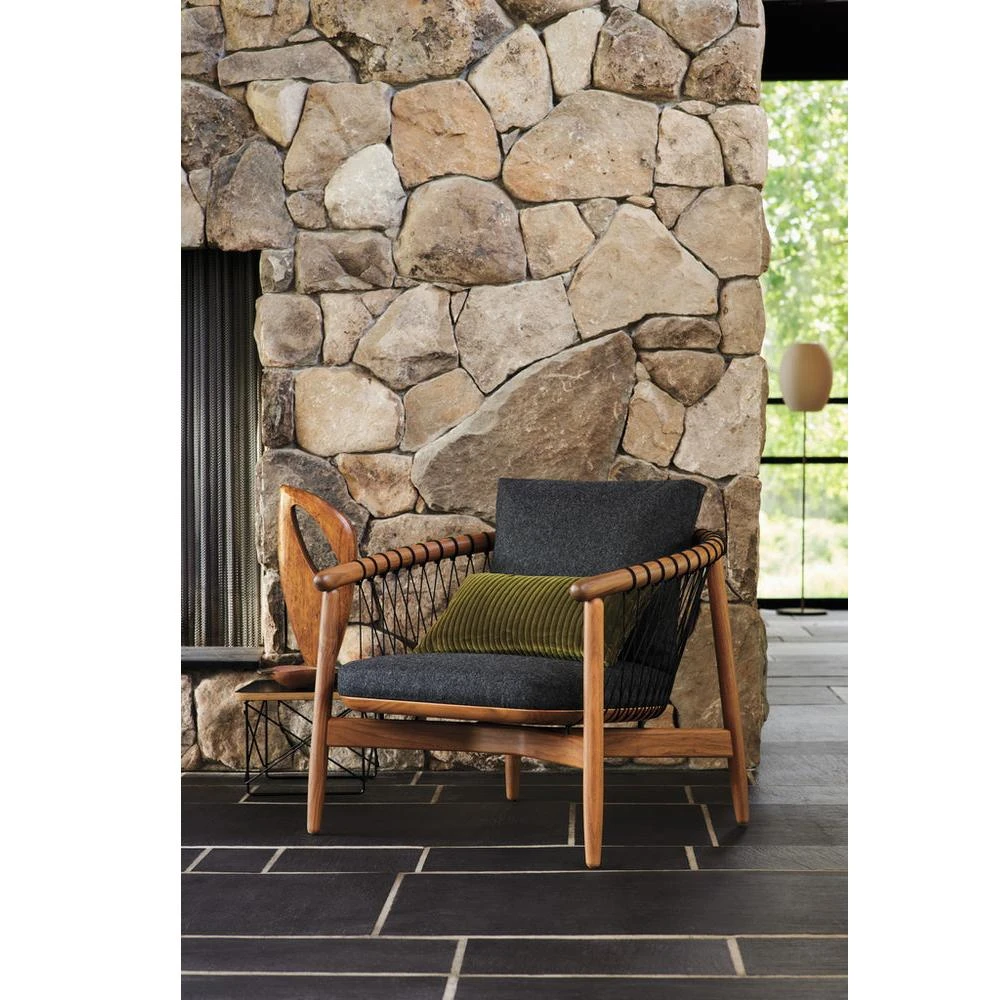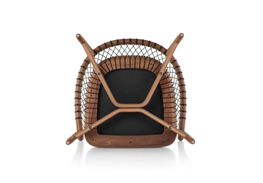 An ingenious union of craftsmanship and industrial materials, the Crosshatch Chair balances a transparent aesthetic with encompassing comfort. Parachute cords, a material common to other industries (thought not typically used in furniture), create a lattice held taught to support the gracefully curved wood frame.