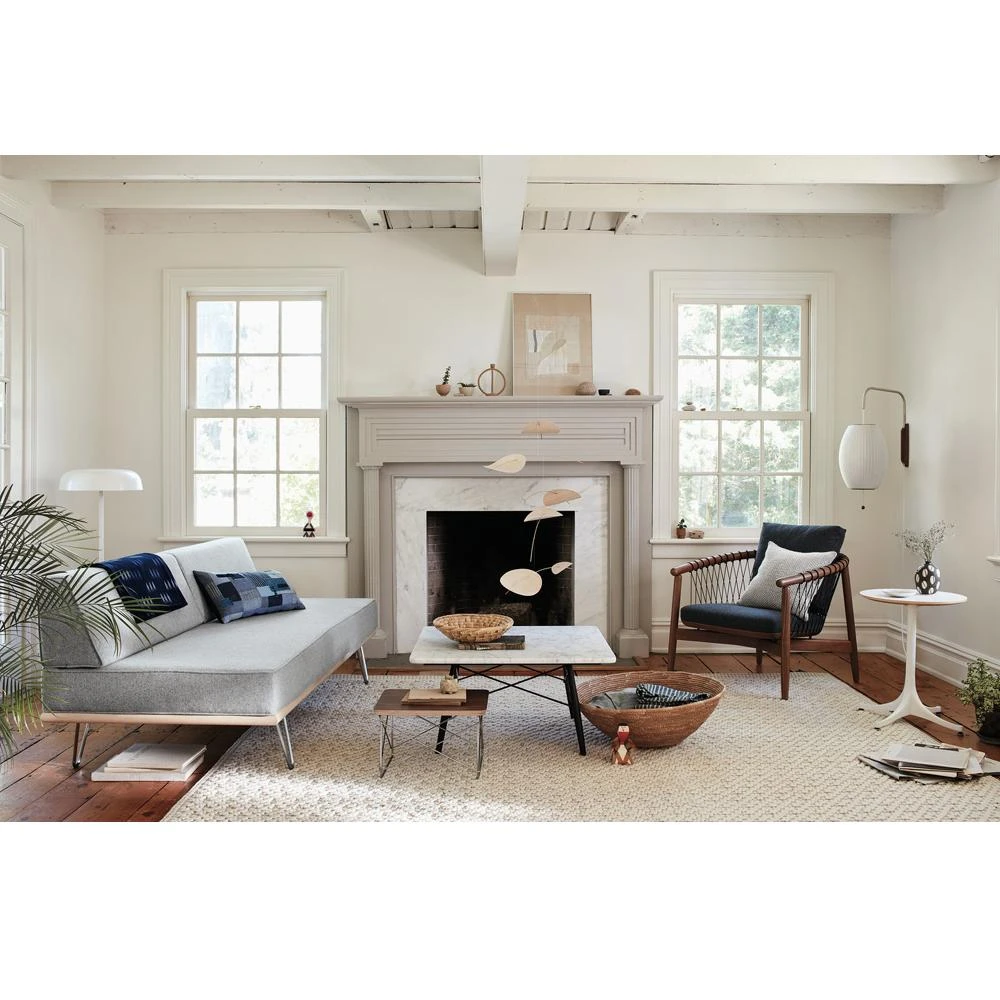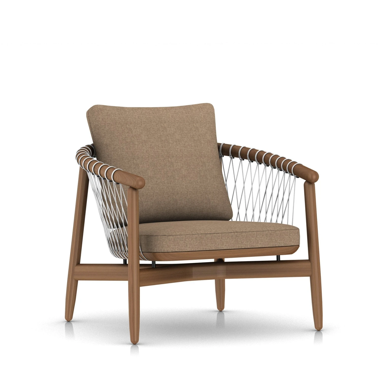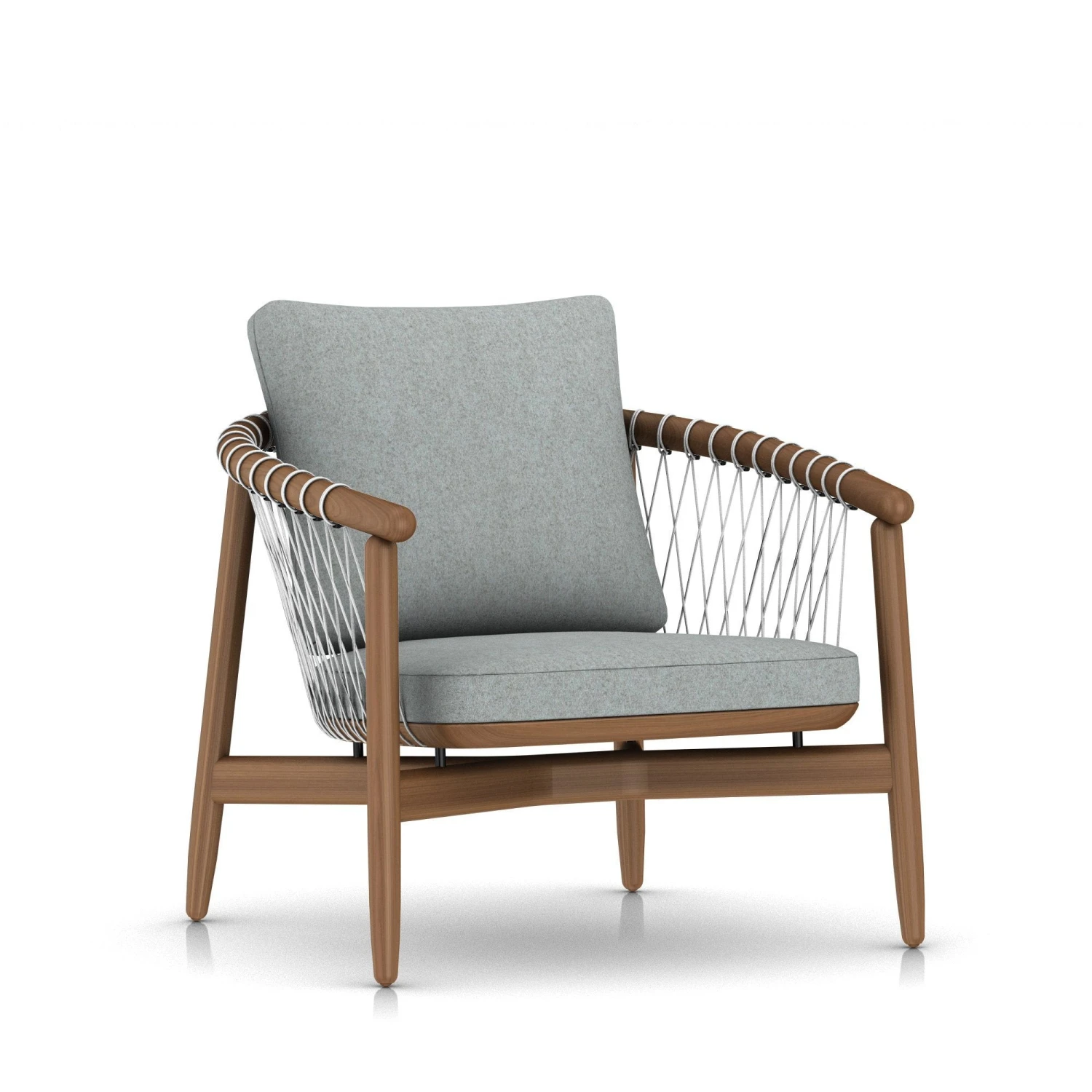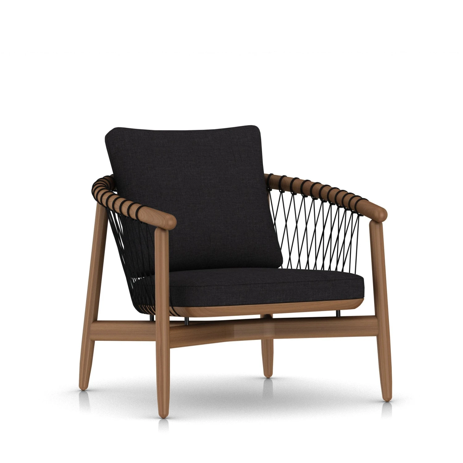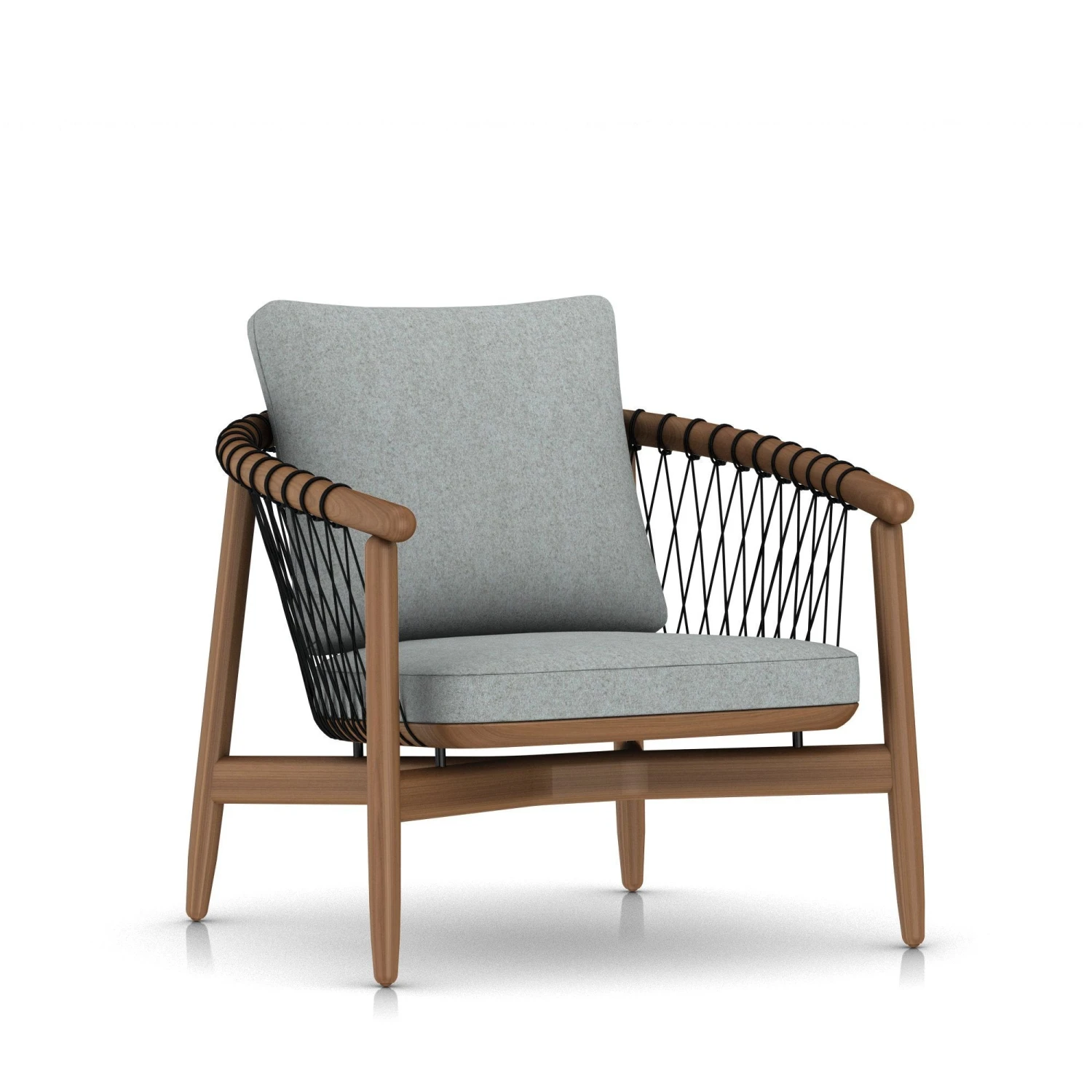 An ingenious union of craftsmanship and industrial materials, the Crosshatch Chair balances a transparent aesthetic with encompassing comfort. Parachute cords, a material common to other industries (thought not typically used in furniture), create a lattice held taught to support the gracefully curved wood frame.