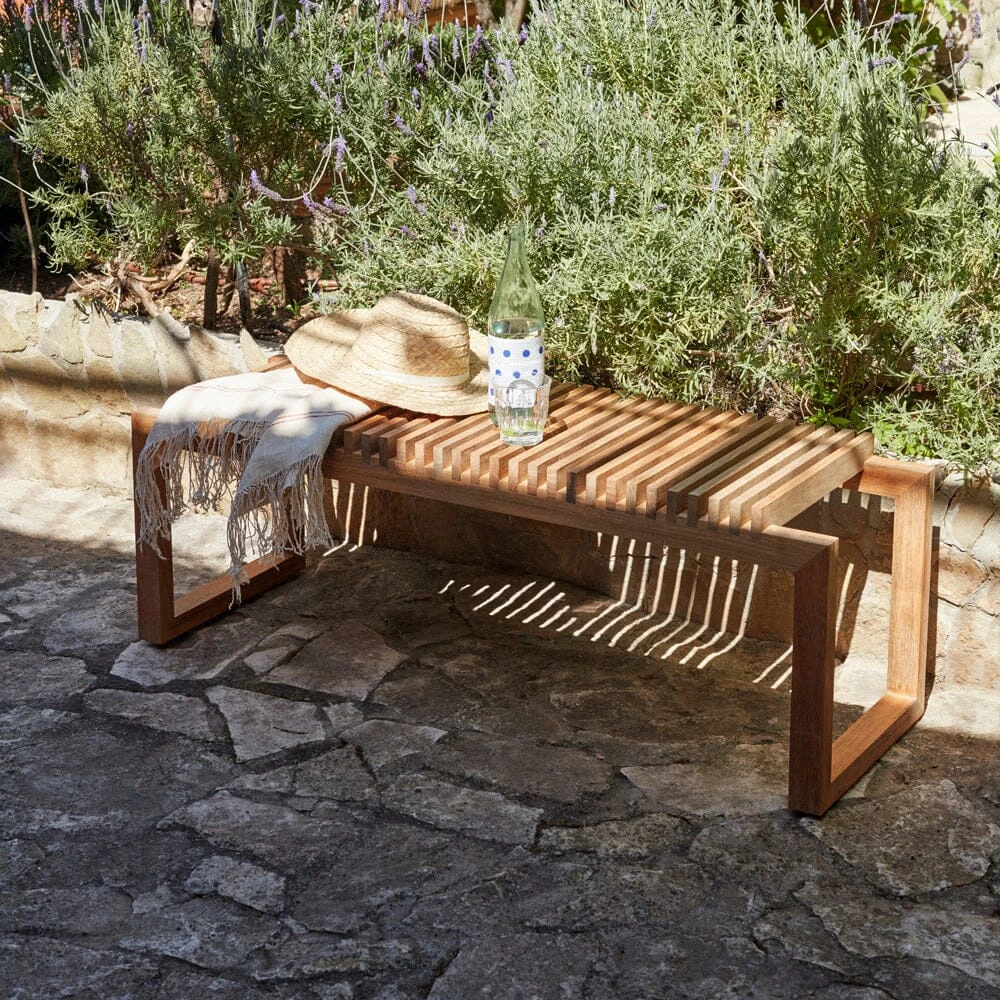 Skagerak’s iconic Cutter collection started with this Bauhaus-inspired bench, originally devised for an exhibition called “Walk the Plank.” Designed by Niels Hvass, it has his hallmark precision in the scale of the geometric frame and the finely spaced slatted seat. The bench is the base for all of the collection’s storage pieces or it functions beautifully on its own—indoors or even outside in the weather-resistant teak version.