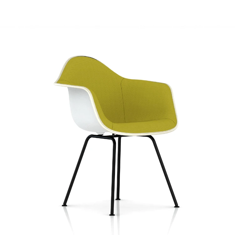 The Eames molded chair in both arm and side chair formats in fiberglass or plastic can be configured with a choice of wire, dowel leg, stacking, rocker, and 4-leg bases. An array of trim, finely tailored Hopsak fabrics designed by Alexander Girard, Herman Miller’s Textile Director from 1952 to 1973, round out the collection of shell customization options, fully restoring the integrity of the original 1953 shell chair offerings. All chairs can be recycled through the Herman Miller Take Back Program.