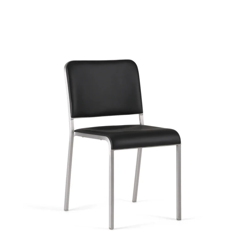 These requirments gave way to the new 20-06 chair. A sleek new chair featuring an ultra-slim, all-aluminum frame, tempered for strength and hand made at the historic Hanover Pennsylvania factory using Emeco’s proprietary “77 step process”. The ergonomically shaped alumninum seat and back are hand welded, resulting in a minimal, seamless appearance. 20-06 is super strong, yet uses 15% less aluminum than the original Navy chair. Of that metal, 80% is recycled aluminum, qualifying it as an environmentally sound product. The lightweight chair will stack 10 high.