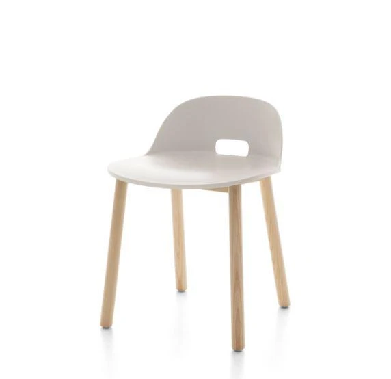 “Alfi is a highly comfortable, well made chair for cafés, bistros, restaurants, kitchens, schools, libraries, waiting rooms and wherever else an impression of relaxed uniformity combined with visual and physical comfort is needed. It was inspired by the woven cane brasserie chairs you see out everywhere on Parisian sidewalks which have rounded backs and flat seats. The Emeco wood filled reclaimed polypropylene seat combines beautifully with the ash wooden leg structures, providing a rich play of materials and finishes. It’s one of the most comfortable chairs I have designed.” — Jasper Morrison