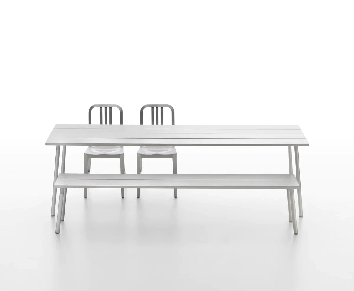 Partners and founders of design office Industrial Facility in London, Sam Hecht and Kim Colin are known for a minimal, no-nonsense approach that reflects meticulous attention to detail and careful consideration of context. The duo has designed products for clients around the globe, including Emeco, Herman Miller, Louis Vuitton, Yamaha and others. Their Run Collection (2016) was developed to facilitate gathering and collaborating, with Emeco’s current selection in mind. In its creators’ own words, “Run is shaped to acknowledge the benefits of being around others, so tables are welcoming and useful, made to work purposefully well with many of Emeco’s existing chairs and stools, including the original 1006 Navy Chair.” It’s equally at home in both indoor and outdoor locations for dining, meeting, learning, sharing and working. Engineered to last for decades and constructed of responsibly selected materials, Run meets ANSI/BIFMA furniture sustainability standards that qualify it to earn LEED credits. Suitable for residential and commercial use. Made in U.S.A.