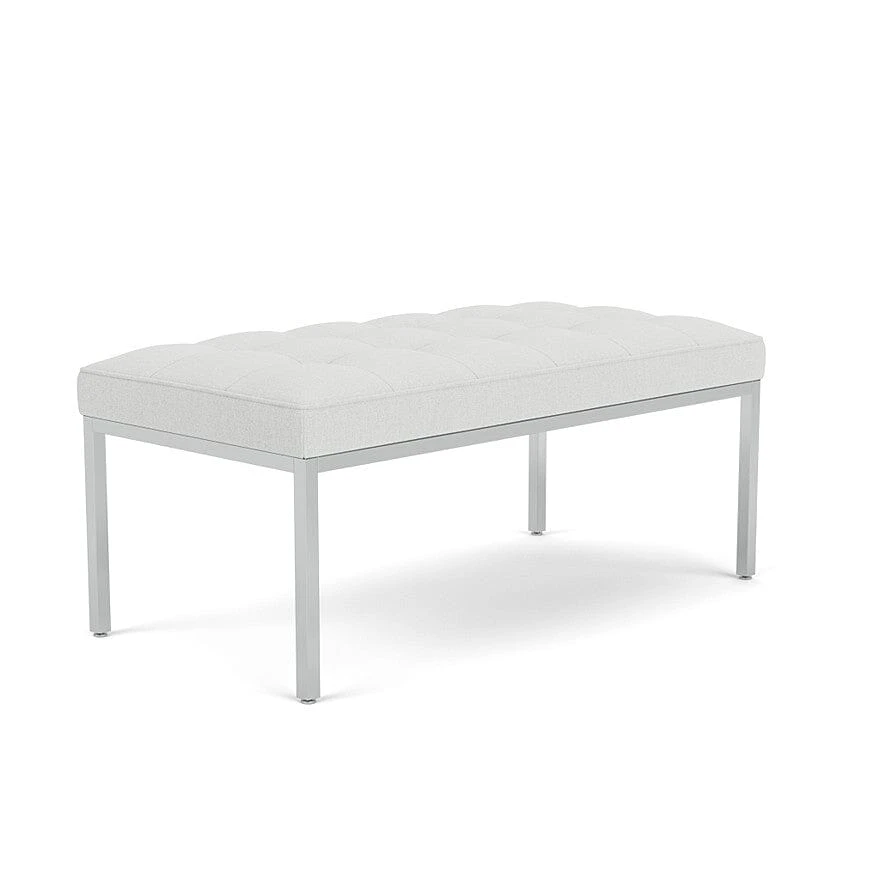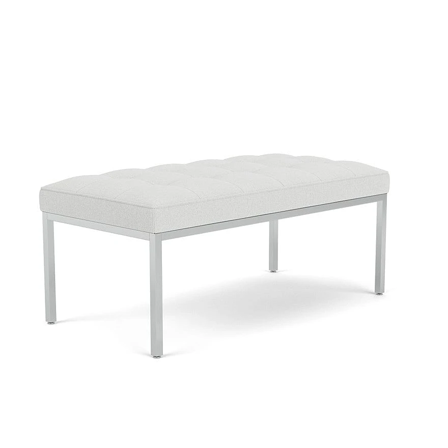 Discover a softer sit and new size in the Florence Knoll Lounge Collection. Consistent with all of her designs, this two seat bench has a spare, geometric profile that reflects the objective perfectionism and rational design approach Florence Knoll learned from her mentor, Mies van der Rohe.