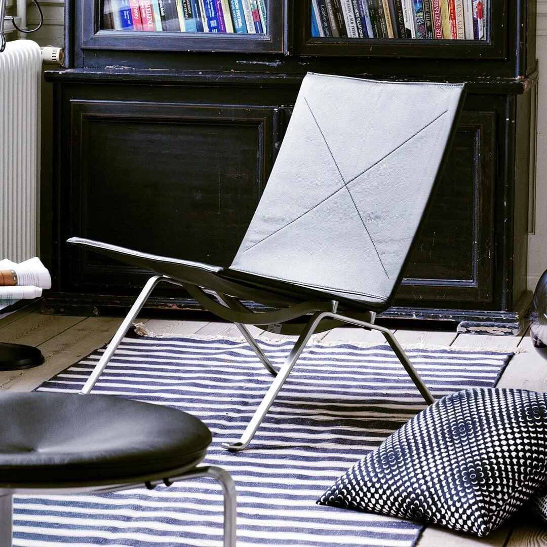 The PK22 easy chair from Fritz Hansen’s “Poul Kjaerholm collection”. Simple elegance, a typical Kjærholm design – with the combination of steel and wicker or leather – in an exclusive and minimalist design. The discrete and elegant PK22 easy chair stands as an icon for Poul Kjærholm’s work.