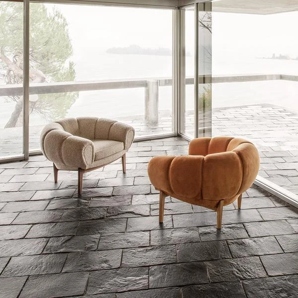 The Croissant Sofa and Lounge Chair represent an elegant and playful take on the traditional typology of the Chesterfield sofa and club chair. Wikkelso believed that a chair was not just for sitting upright, but that it should be comfortable no matter the angle at which you sit – or even lie down. He redefined these classic pieces for a more relaxed audience emerging in the optimism of the 1960s.