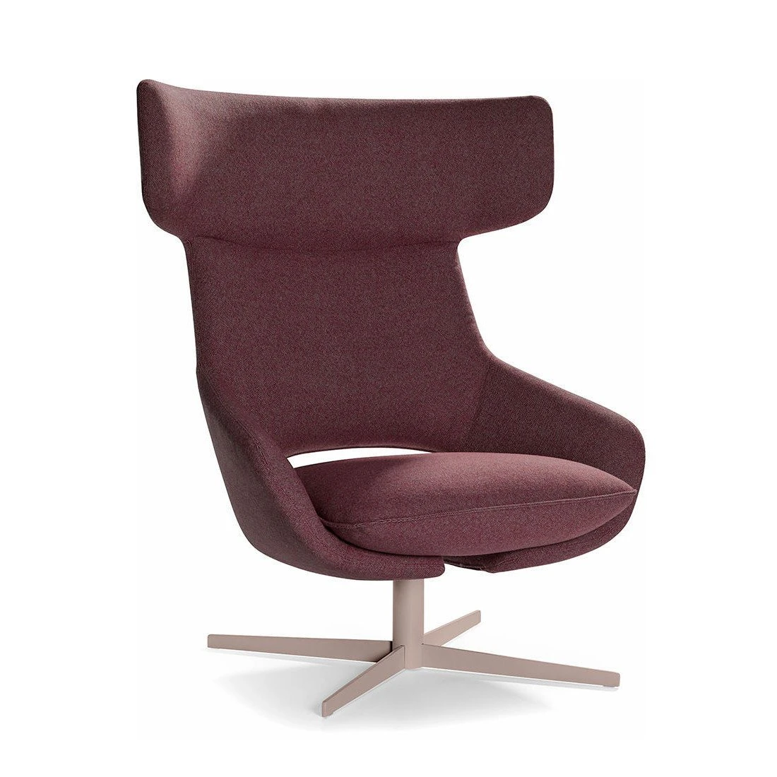 Kalm features either a oiled wood base with white plastic glides or metal swivel base and transparent plastic glides. Metal swivel base can be specified with a powder-coated finish or polished stainless steel.