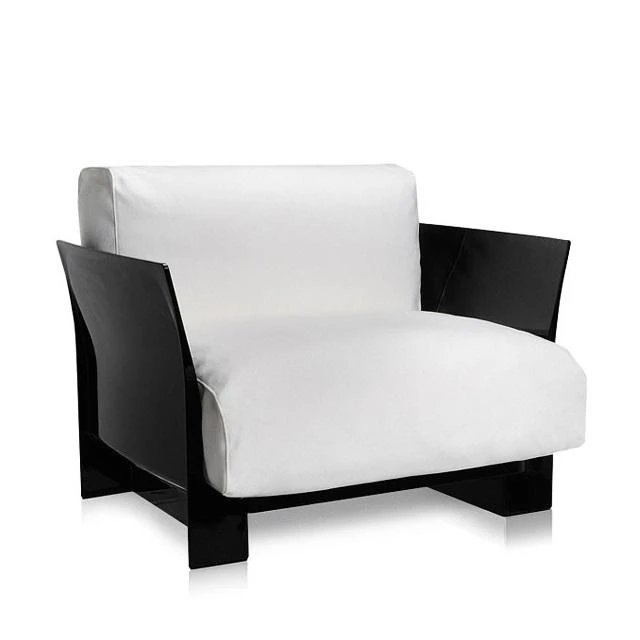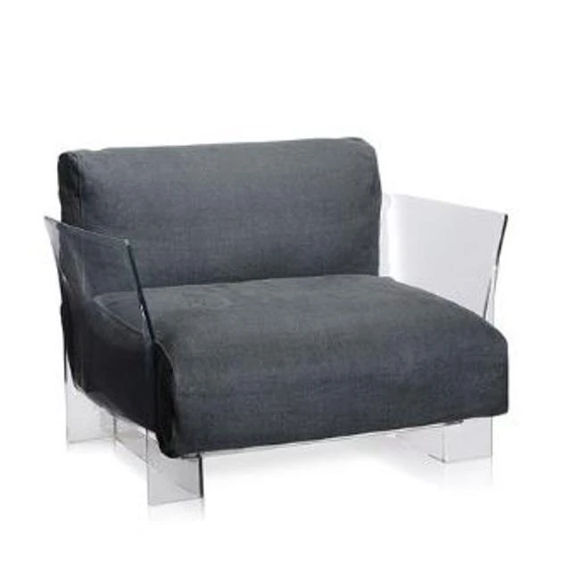 Elegant but comfortable, chic but durable, the POP sofa and armchair clad in five soft shades of white, grey, black, beige and brown linen with a transparent or black frame fits in perfectly with any environment.