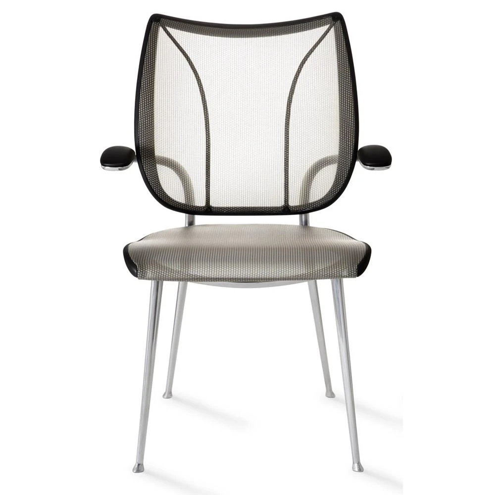 Using Humanscale’s tri-panel backrest construction, the Liberty Side chair offers body-fitting comfort and lumbar support. This contemporary, multipurpose chair uses revolutionary Form-Sensing Mesh Technology and a pivoting backrest to provide complete support during a gentle recline. Designed to complement the Liberty task chair, the Liberty Side is a beautiful and versatile chair that encourages the same balanced movement throughout the day.