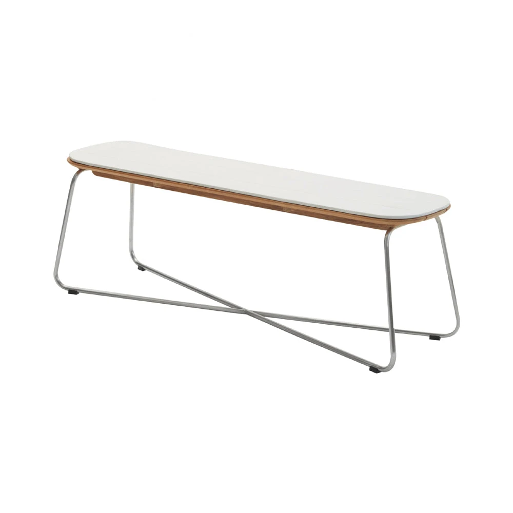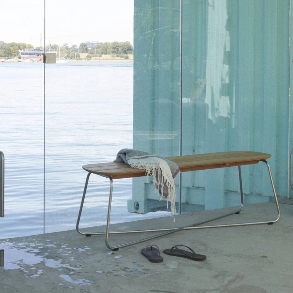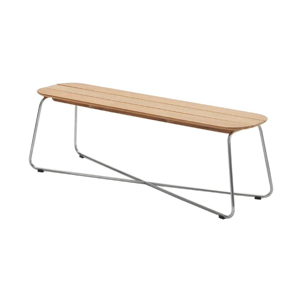 Designed by Bjarke Ingels Group for the the Skagerak Collection by Fritz Hansen, the Lilium Bench is a multifunctional work of art. Ideal as an outdoor dining bench, this piece can also be used as a poolside lounge table, surrounded by chairs, and underneath a shading umbrella. Showcasing a sturdy stainless steel and teak wood design, this bench is naturally resistant to sun and weather and the wood will adopt a silver patina over time. Top with cushions for a comfortable outdoor rest spot, or mix and match with other outdoor seating to create the perfect al fresco dinner option.