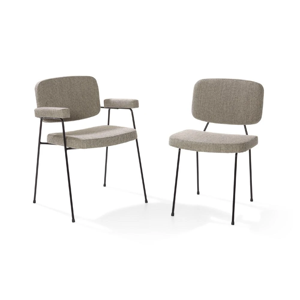 A good, old-fashioned chair designed by the late Pierre Paulin. Previously in the collection of Thonet France, it now completes the Artifort collection. The design of the Moulin dates from Pierre Paulin’s early years and was conceived on the Rue Jean Moulin. The design is modest with a slim frame and an upholstered back and seat. Simple and without frills. Perfect for the breakfast table or work table.