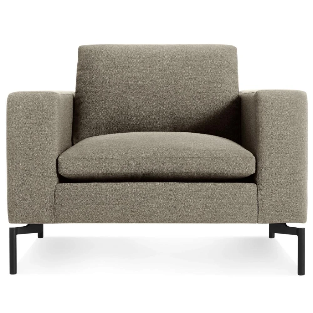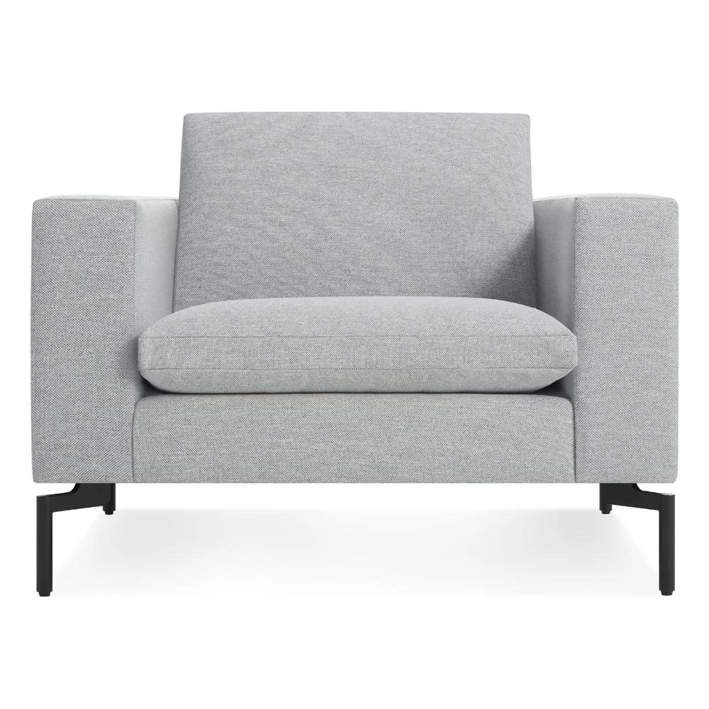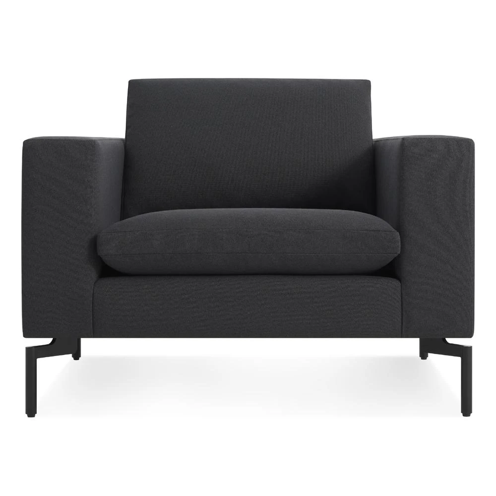 Sometimes it is not about starting from scratch, but rather revisiting past designs and making them better. The New Standard modern lounge chair is simplicity at its best with a twist. Now new and improved. Wide arms and inviting loose cushions all come together with tuned proportions and show stopping legs.