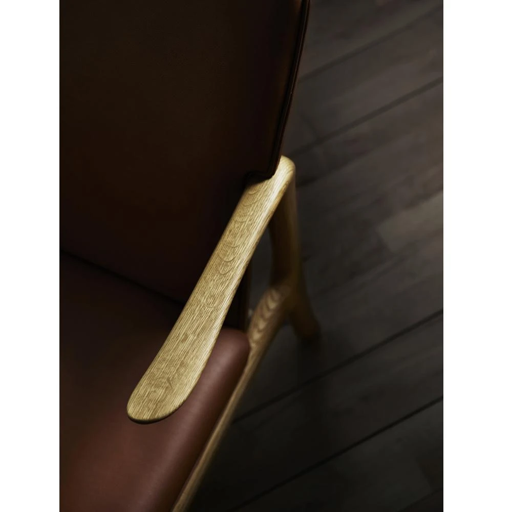 The Beak Chairâs distinctive look is thanks in part to the beak-like armrests that inspired its name. This unique design feature demands carefully selected materials and skilled craftsmanship, as do the upholstered seat and back.