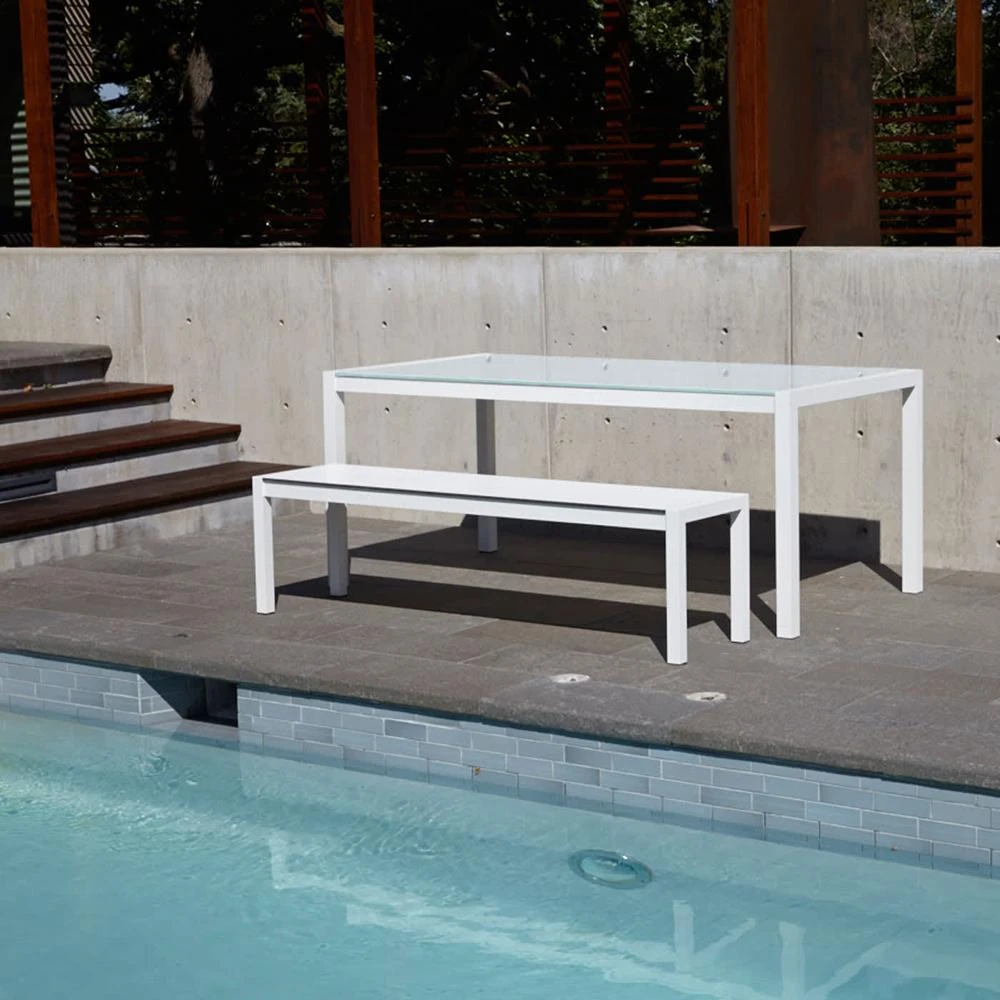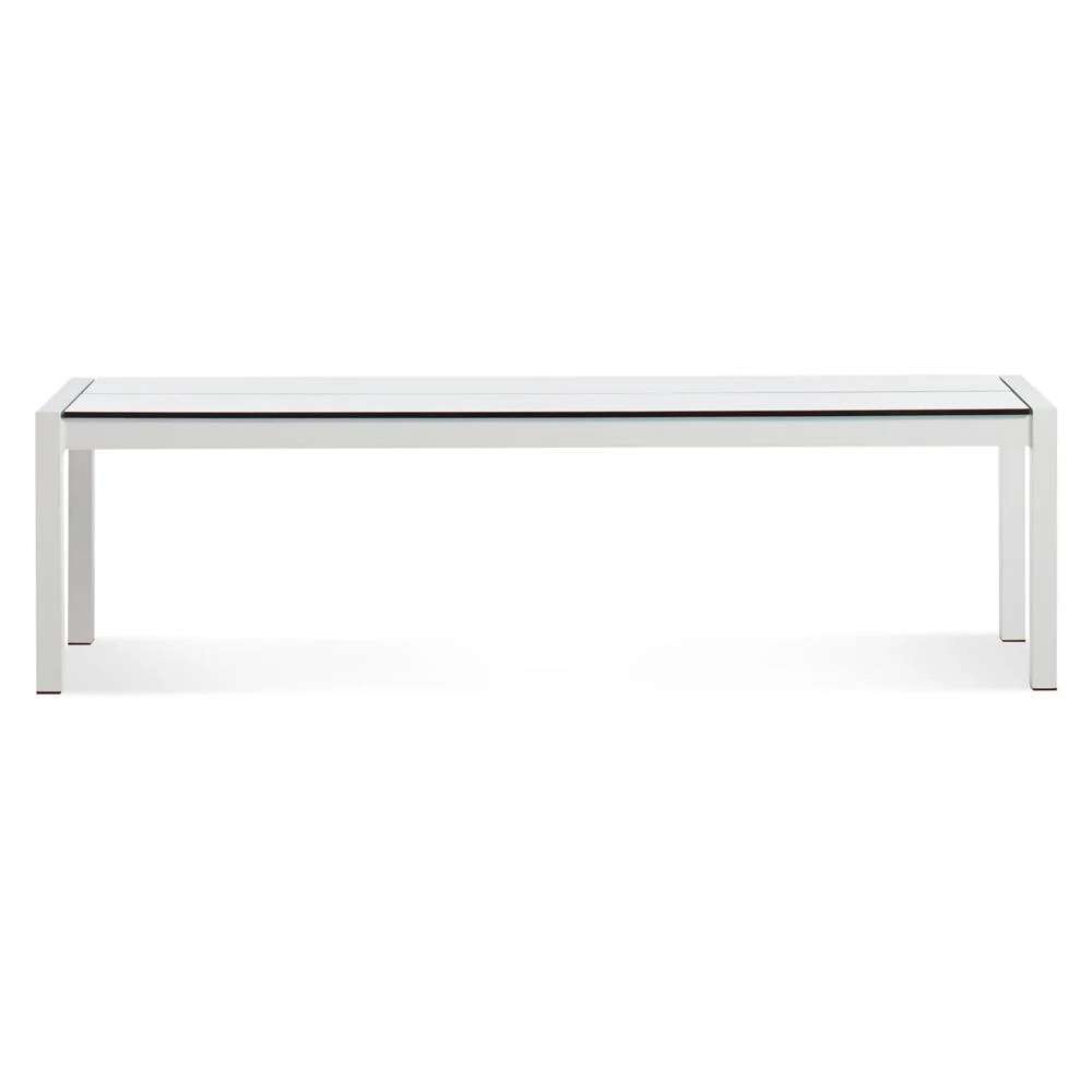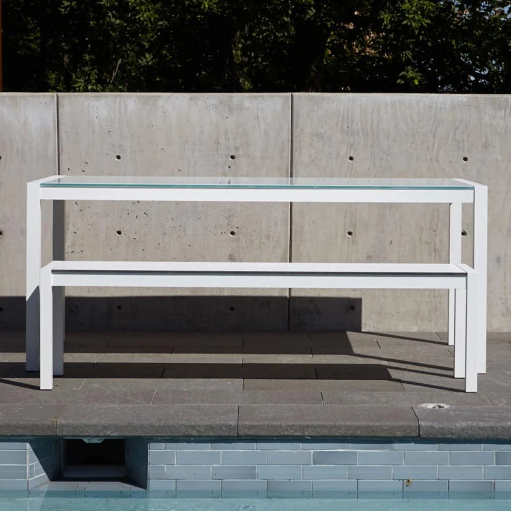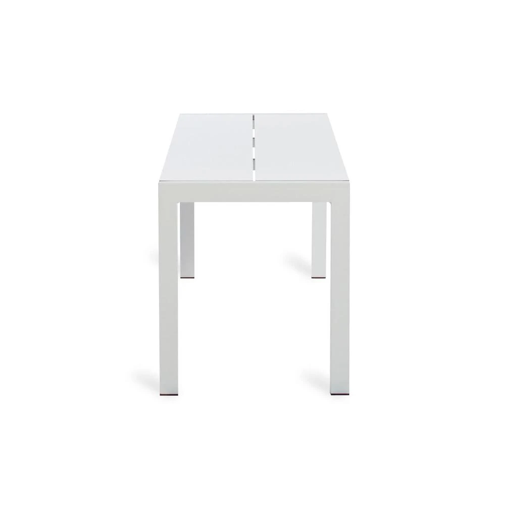Crisp minimal White anodized aluminum and Batyline textile. Clean lines designed to weather the elements.