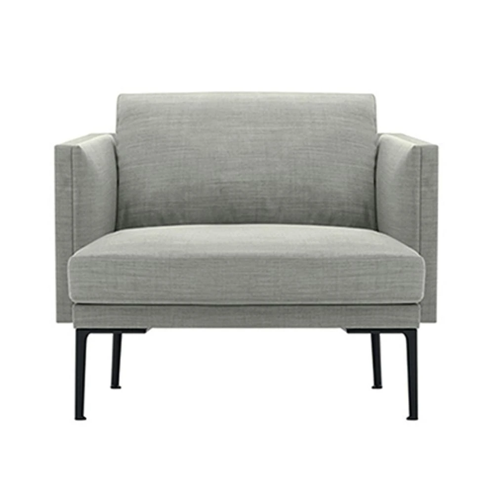 Steeve’s silhouette is solid and architectural while at the same time appearing slender, light and volumetric. Its uniquely manufactured seamless back and arm covers are stretched to fit the frame –– an industry innovation that eliminates the need for more complex upholstery techniques. This technique highlights Steeve’s clean design while plush interior cushions provide a soft seat. Optional cushion dimensions and a choice of base styles make this smart, elegant design suitable to both contract and home environments.