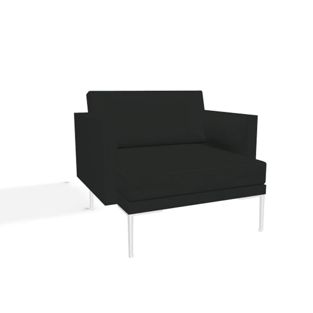 Steeve’s modular seating system is reimagined once again for 2016. Refined and substantial, Steeve is now available with a new aluminum base in either black or white, elevating the architectural and volumetric form off the ground and reinforcing its minimal, modernist expression. Ideally suited for the well-appointed home or the sophisticated work environment, Steeve is available in a wide range of fabrics, leathers and finishes to complement its new aluminum base system.