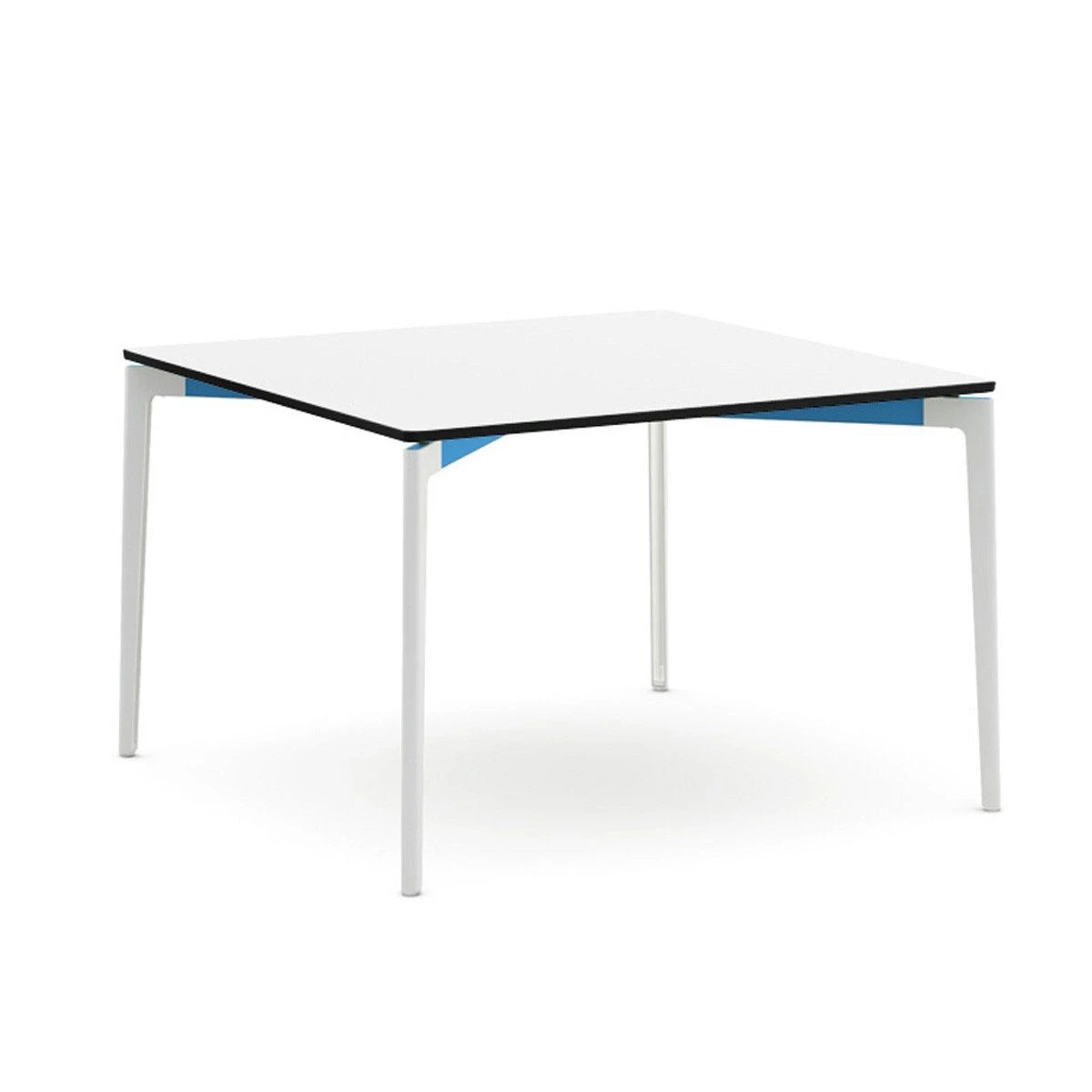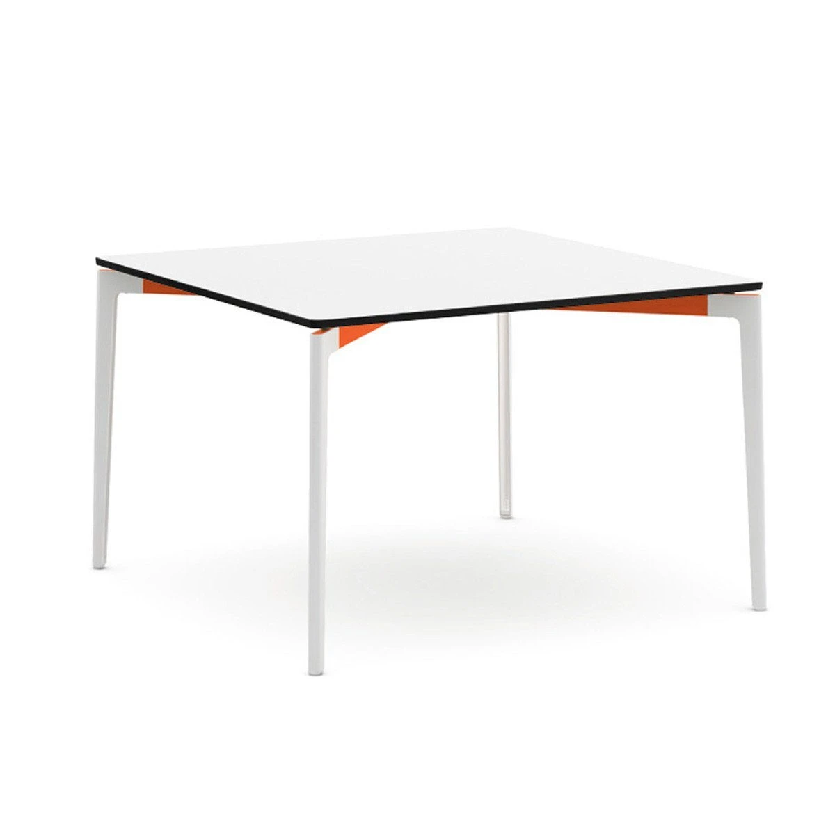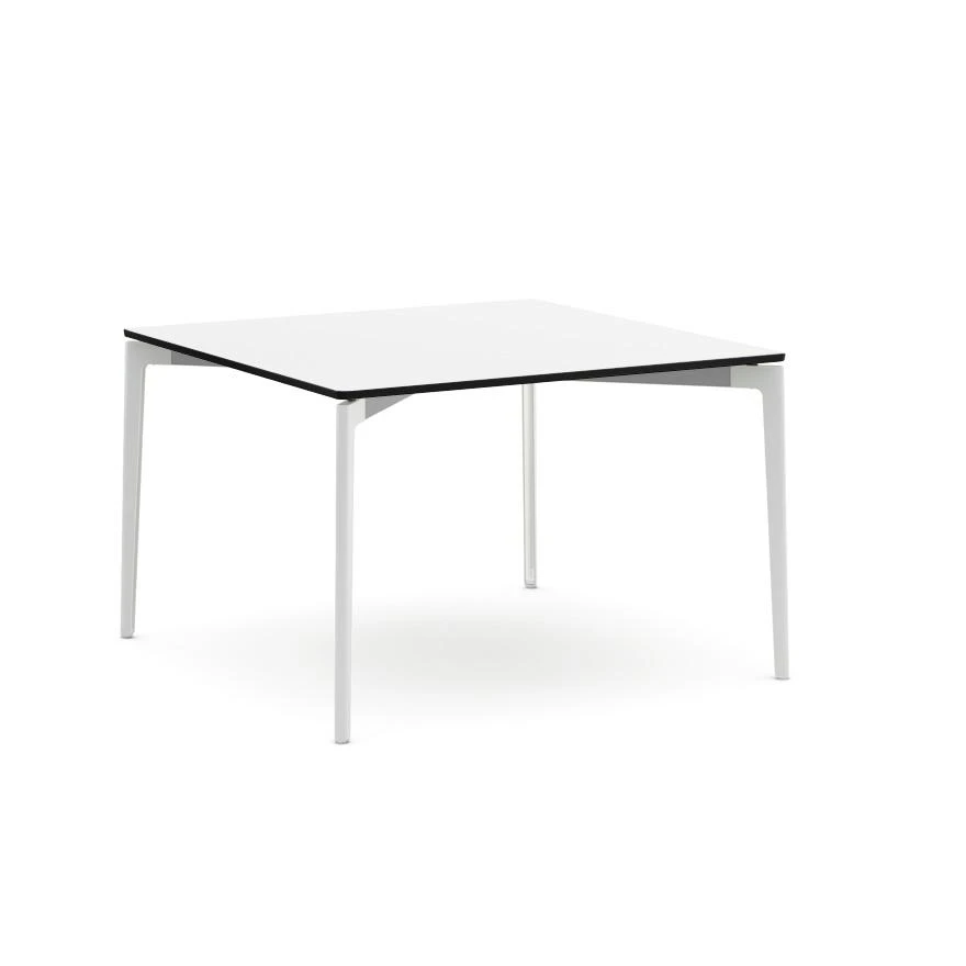 The Stromborg table collection, designed for indoor our outdoor use, offeres clean lines and a broad palette of top materials and paint finishes that complement any environment. The signature X- and Y- shaped aluminum rails are offered in bright colors for a subtle but energetic accent.