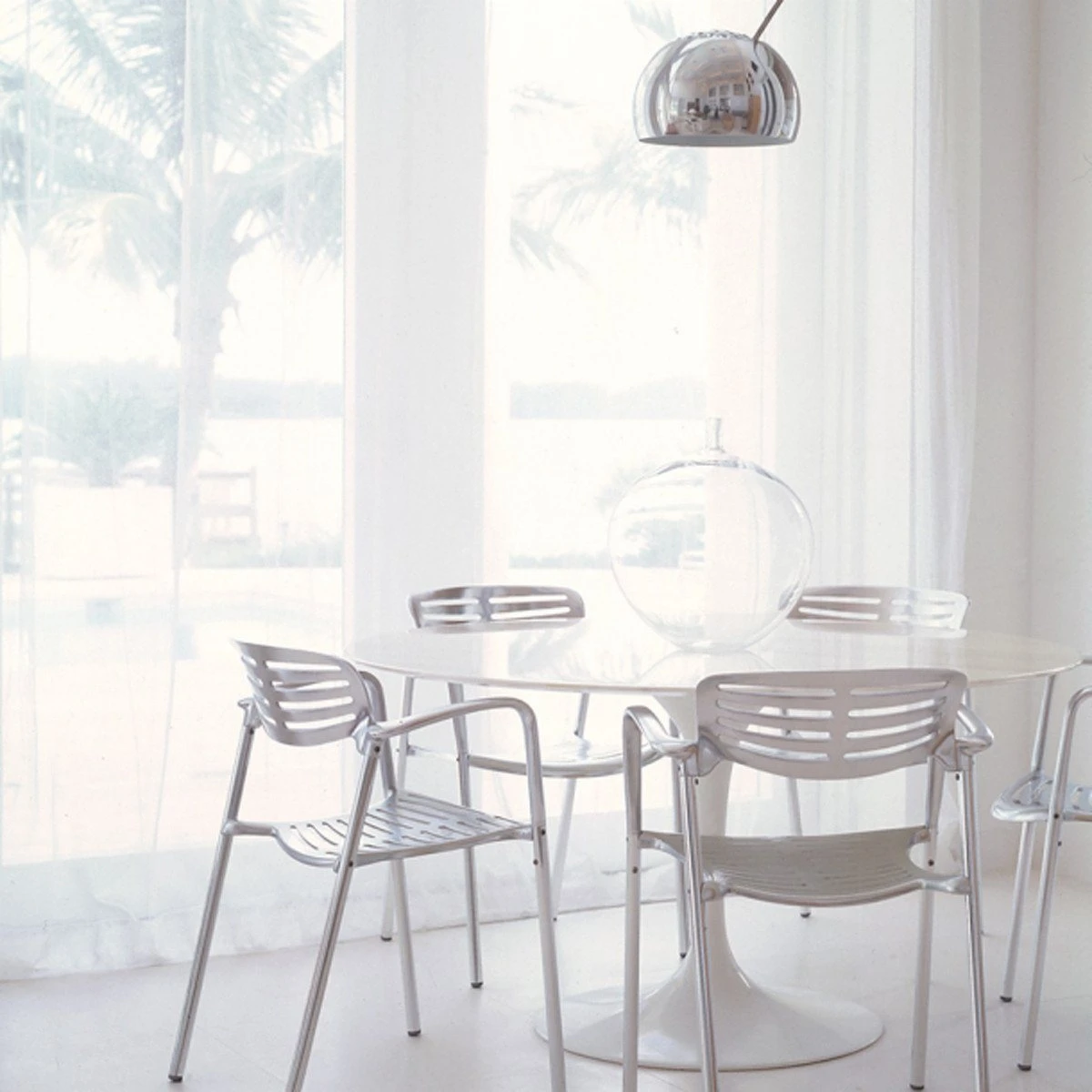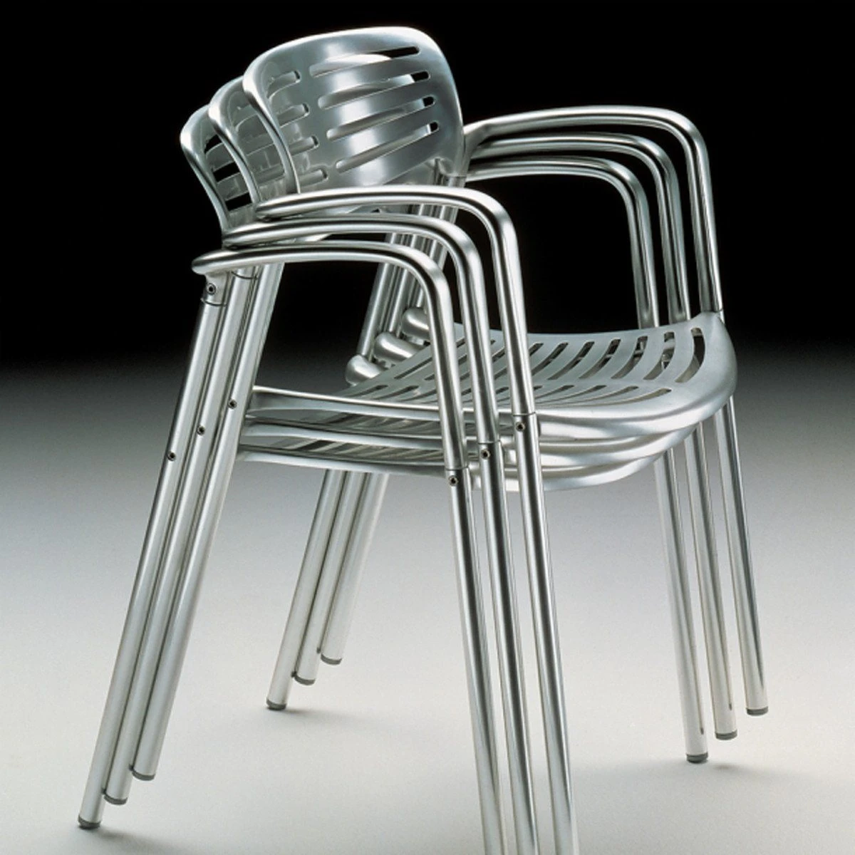 Barcelona architect and industrial designer Jorge Pensi brings his forward-looking aesthetic to KnollStudio with the Toledo chair. An instant classic, the chair is featured in the permanent collection of The Museum of Modern Art. The Toledo chair is a fluid combination of cast-aluminum back and seat sections joined by tubular luminum arms and legs. The chair’s material makes it versatile in application and is appropriate for use both indoors and out. 100% recyclable.
