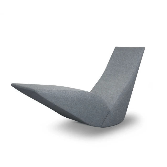 The very rare and unusual furniture typology of the rocking chaise longue is explored here in a monolithic form, carefully balanced to encourage a gentle rocking motion with its gentle curves and reduced silhouette. The Bird Chaise is a bold sculptural statement that is destined to bring extra colour and shape, movement and comfort into lobbies, breakout areas and homes.