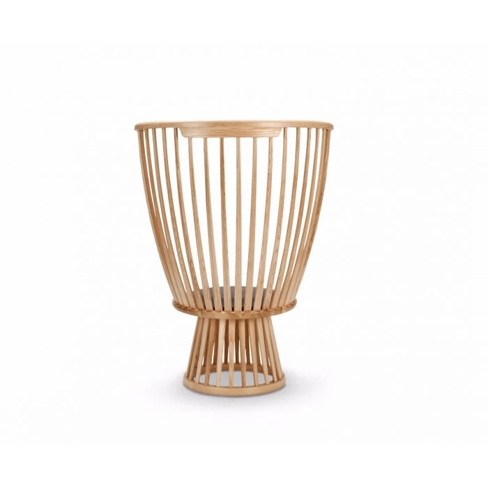 Originally a dramatic and sculptural take on a British design classic, Fan is available as a high back chair, dining chair, stool and table. The stools and chairs have a black leather seat pad, while the chairs feature a curved back, offering support and comfort. The lounge chair is available in black or natural ash.