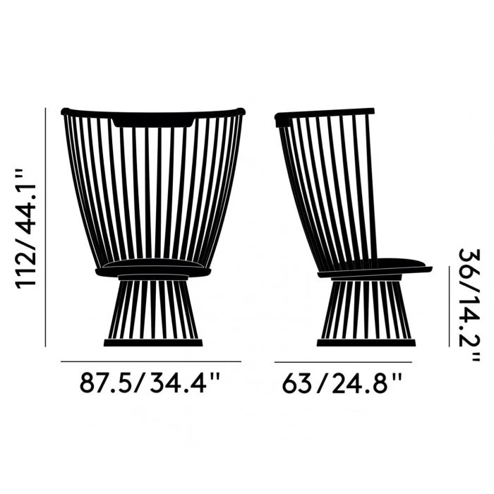Fan is a modern take on the classical Windsor chair. A British archetype converted to a contemporary silhouette, creating an exclamation mark in the home with a semi-transparent structure that takes up minimal visual mass for a large and imposing chair.