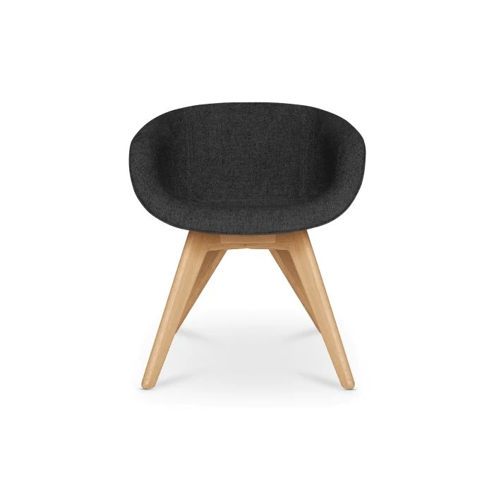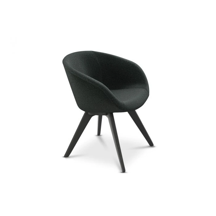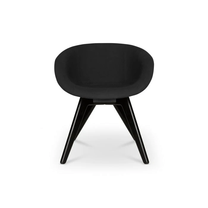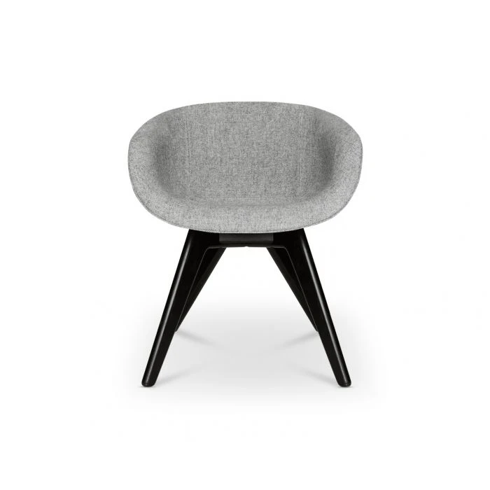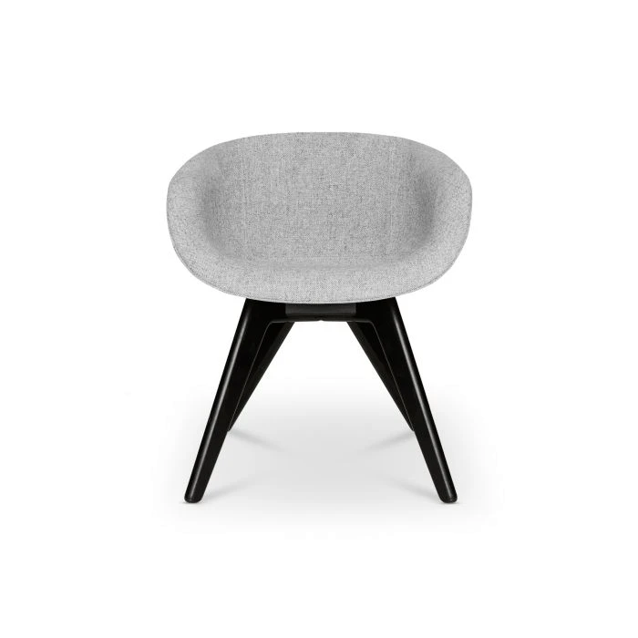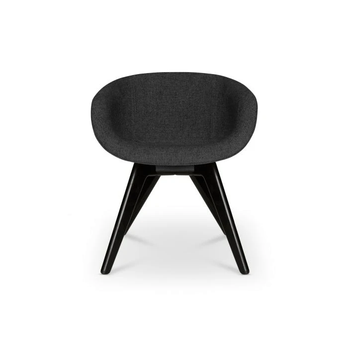 Re-designed in 2018 for maximum comfort and visual impact, Scoop was originally developed for the Royal Academy of Arts Restaurant in London. This grey low back chair is upholstered using Kvadrat’s durable woolen fabric and features black legs. Engineered from new foam moulded curves, Scoop dining chair hugs the contours of the body.