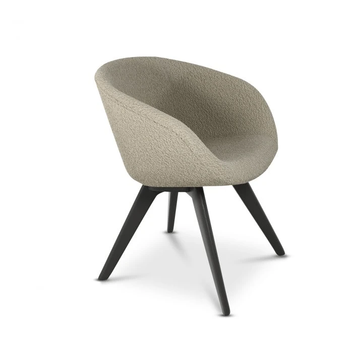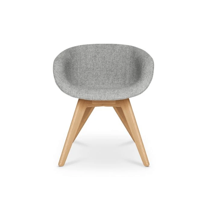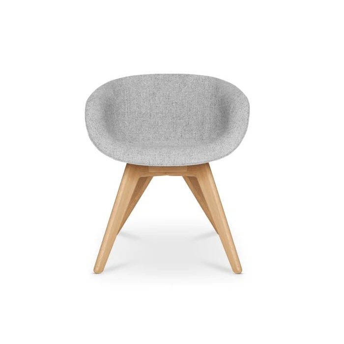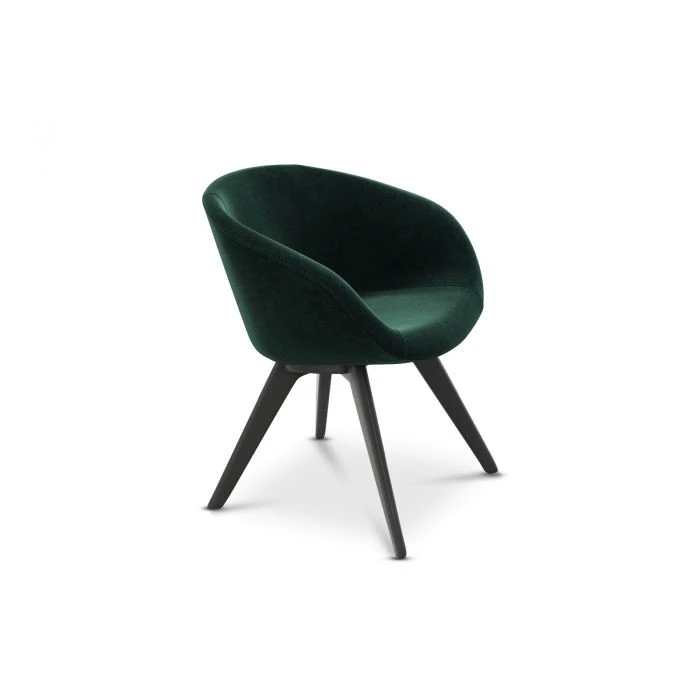 Scoop was originally developed for the Royal Academy of Arts Restaurant in London. The brief was for a chair that was generously proportioned, comfortable and fully upholstered – the result was a rounded soft shell inspired by motor racing ‘tub’ seats. The collection is available in a wide range of colours and fabrics, and with Black, Natural, Copper and Brass leg options. Also available as a high back dining chair.