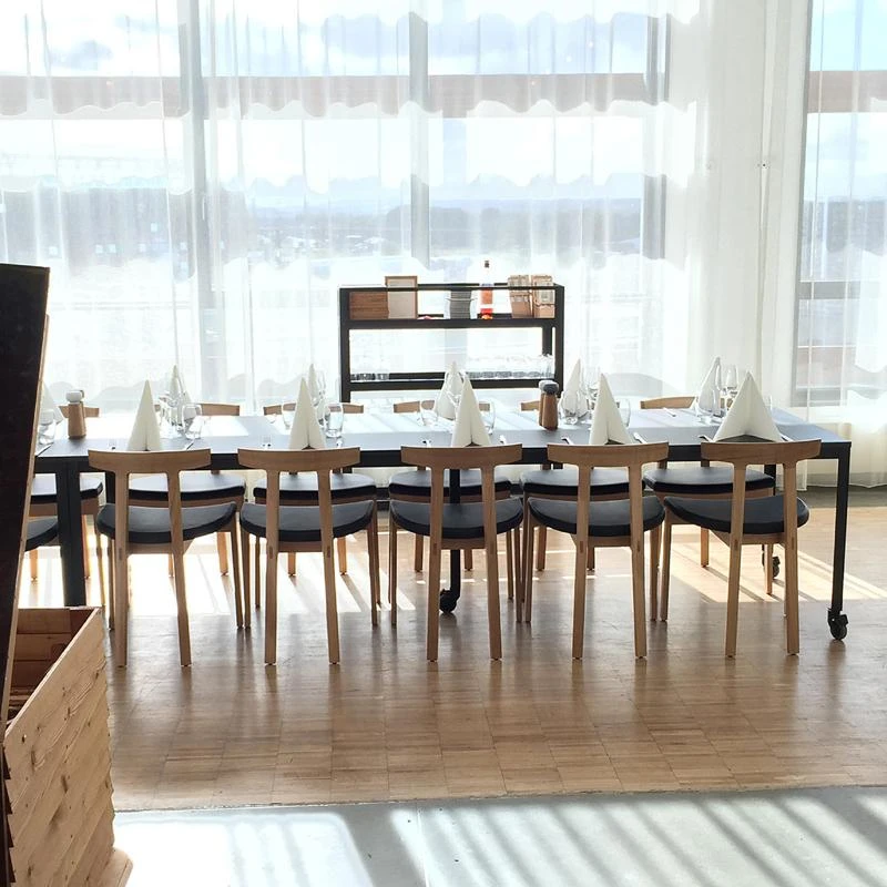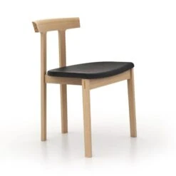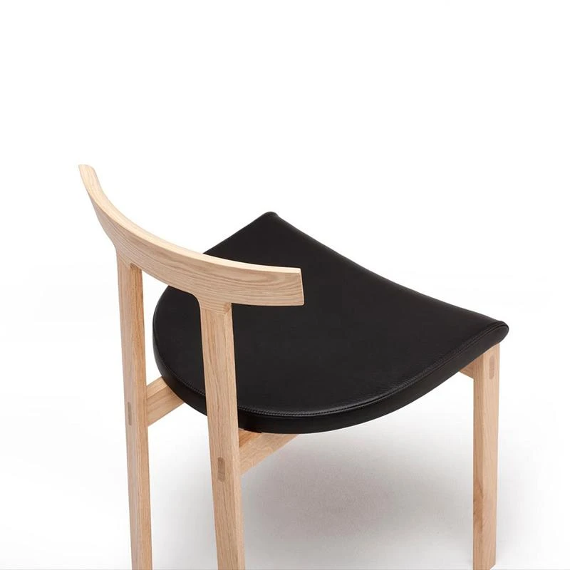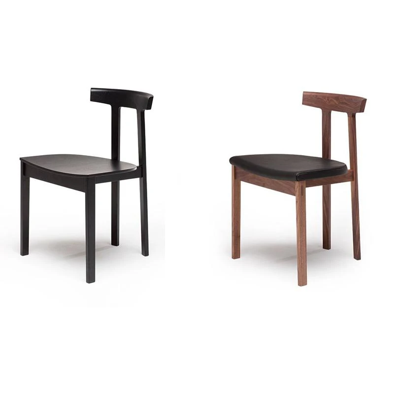 Available in Black stained Ash, White Oak, and Walnut with leather or fabric upholstered seats. Black stained Oak version also available with a plywood seat.