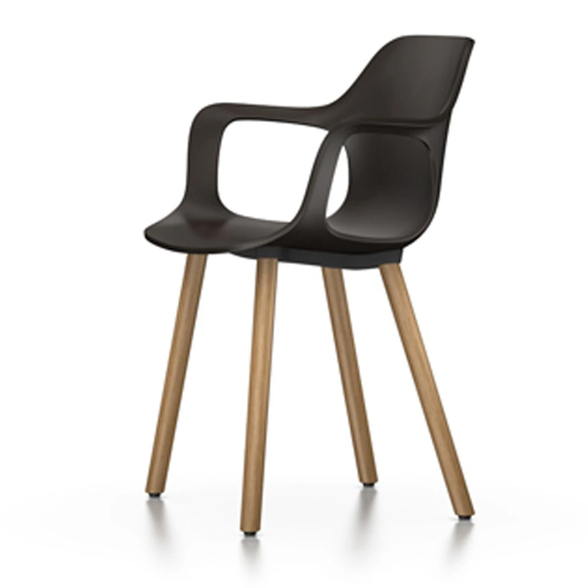 HAL RE Armchair Wood by Jasper Morrison is part of the multifaceted HAL family. The combination of a comfortable shell made of recycled plastic and a robust four-legged wooden base lends the chair a home-like appearance, which is also perfectly suited to diverse meeting settings. The seat shell with integrated armrests is available in a large selection of colours, while the chair legs come in a choice of different wood varieties.
