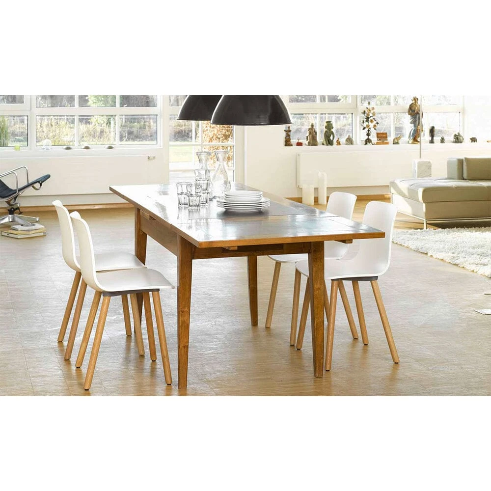 RE designates the HAL model with a seat shell made of recycled plastic. Utilising this recycled material from household waste instead of conventional plastic generates less climate-damaging emissions, with a reduction in energy consumption. Due to the composition of the recycled material, the different colours are interspersed with tiny specks of pigment, giving the seat shells a certain natural appearance and a warm inviting appeal – especially when combined with the characteristic wooden legs in the version HAL RE Wood.